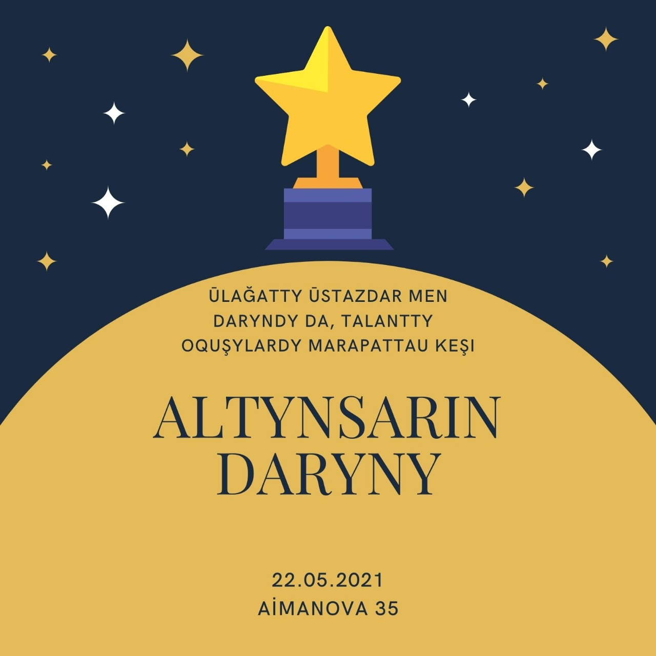 DARYN-2021 кеші 21-05-2021, 12:20 Құрметті достар, ұстаздар, ата-аналар, түлектер!⠀Ауа райының қолайсыздығына байланысты ДАРЫН кеші сенбі күні сағат 11:00-ге шегеріледі
